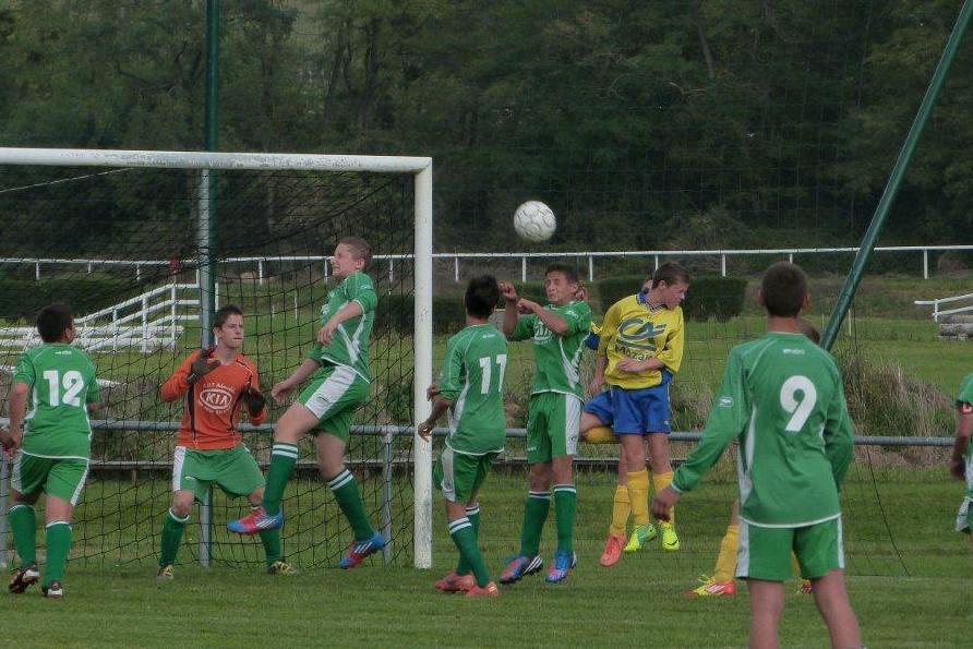 C’est sous un soleil estival que les U15 recevaient une entente Tramayes-La Chapelle en cette 3e journée de championnat. Dès la 5e minute de jeu, Brice Jacquet débordait sur le côté gauche et mettait la pression sur la défense adverse en centrant fort devant le but, centre malheureusement pour les visiteurs dévié au fond de leurs filets par un des leurs. Est-ce la cause de cette rapide ouverture du score qui a fait que les locaux sont progressivement tombés dans un jeu brouillon, oubliant leur combativité habituelle et leurs fondamentaux ? A 5 minutes de la pause, c’est Brice à nouveau qui réveillait les troupes, son slalom entre 4 visiteurs se terminant par une jolie frappe qui ne laissait aucune chance au portier adverse. A deux minutes de la pause, Clément Mettay, le tout récent appelé en sélection des Pays Saônois corsait l’addition en reprenant victorieusement un corner. La pause était atteinte sur le score de 3 à 0 sans que l’équipe n’ait produit du beau jeu ni forcé son talent.