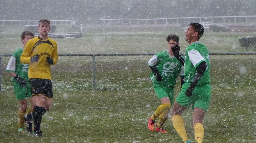 La seconde mi-temps ne verra pas d’évolution du score malgré quelques occasions de part et d’autre. Belle tête de Franck Calaudi sur un corner (48eme) et occasion identique pour les visiteurs (52eme). A la 69eme, le même Franck décalait bien Thomas Philippe qui voyait sur tir malheureusement s’écraser sur la transversale. HL2S répondait par un joli tir suite à un corner qui passait de peu à côté de la cage de Théophile Bonichon (79eme) et à la 85eme, un ballon flirtera même avec sa ligne de but sans que personne ne puisse le glisser à l’intérieur.