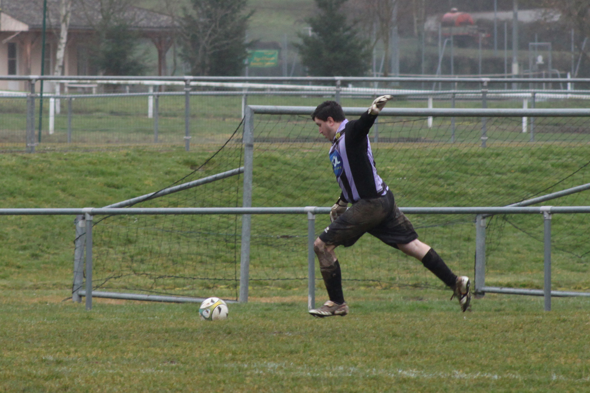 Alors que l’on est entré dans le temps additionnel, Pierre Yves Blaise pense avoir fait le plus difficile pour Cluny en plaçant le ballon hors de portée du gardien de Genlis. Mais le tir du Clunysois est freiné par une flaque d’eau qui permet au portier visiteur de se saisir du ballon.