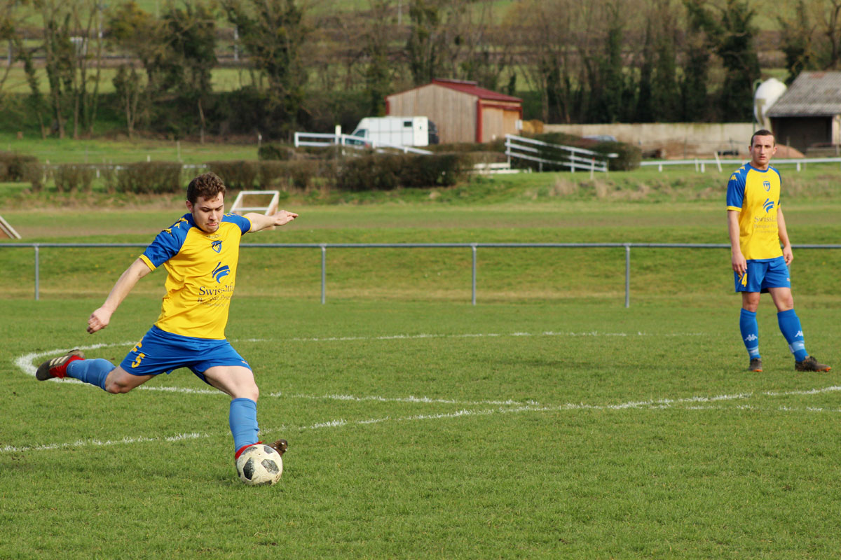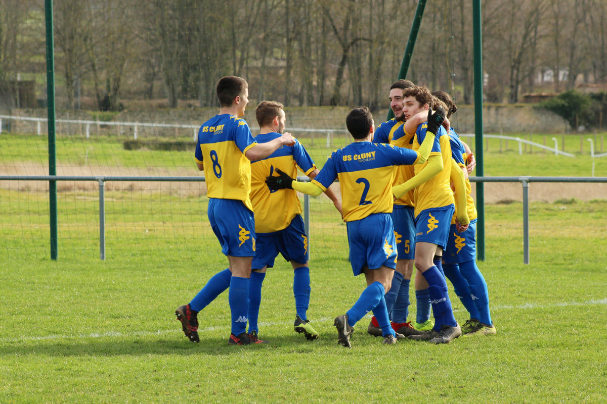 Grâce à une bonne entame de match, l’équipe fanion aura su se mettre rapidement à l’abri. Dès la 7e minute, Jérémy Myard ouvre le score sur une percussion individuelle suivie d’une belle frappe aux 18 mètres. À la 22e, Maxime Dufour double la mise avec un but plein d’opportunisme sur un cafouillage dans la surface adverse. À la 27e, c’est au tour d’Étienne Vouillon de marquer de la tête sur un corner de Jérémy Myard pour le 3-0. L’équipe de Pouilly ne s’avouera pourtant pas vaincue et réduira le score quelques minutes plus tard sur un penalty très contestable.
